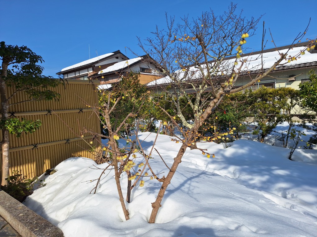 可愛い蕾を付けているのに、、今年の雪は硬く重く、庭木には堪えます。