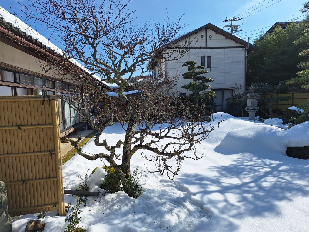 1月20日からの大雪で紅梅の枝が2か所折れてしまいました。
